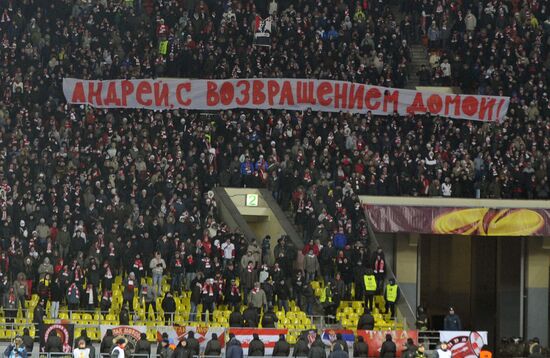 Spartak's fans display a banner welcoming the return of Andrey Tikhonov to the club at the UEFA Europa League 1/16 Round match FC Spartak Moscow (Russia) vs. Basel BAsel (Switzerland) at Luzhniki Stadium.24.02.2011#868422