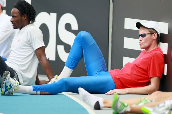 Russian athlete Alexander Shustov before competition in the men's qualification for the high jump at the World Athletics Championships in Daegu, South Korea.30.08.2011#950443
