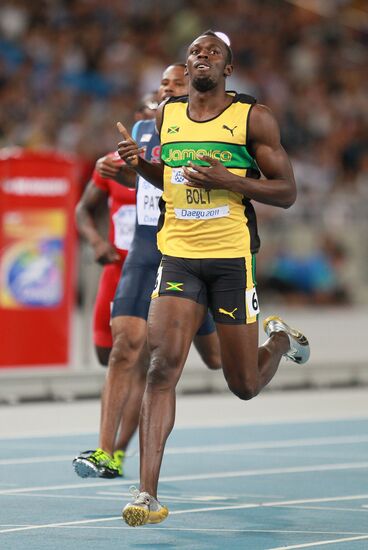 Jamaican sprinter Usain Bolt after the 200-meter race at the world championships in Daegu, South Korea.02.09.2011#952672