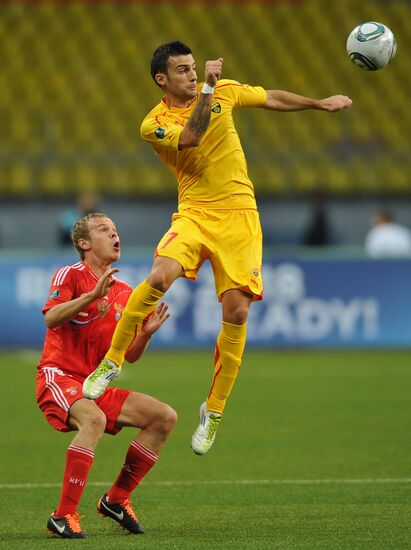 Alexander Anyukov (Russia) and Ivan Trichkovsky (Macedonia) (left to right) in the qualifying European Football Championship match between the national teams of Russia and Macedonia.02.09.2011#952585