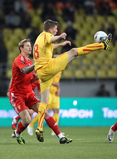 Goran Popov (Macedonia) and Konstantin Zyryanov (Russia) (left to right) in the qualifying European Football Championship match between the national teams of Russia and Macedonia.02.09.2011#952571