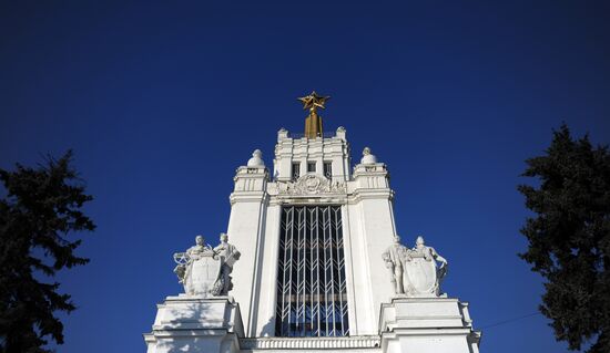 A view of the central pavilion and the monument to V. Lenin at the All-Russian Exhibition Center.27.01.2012#1023020